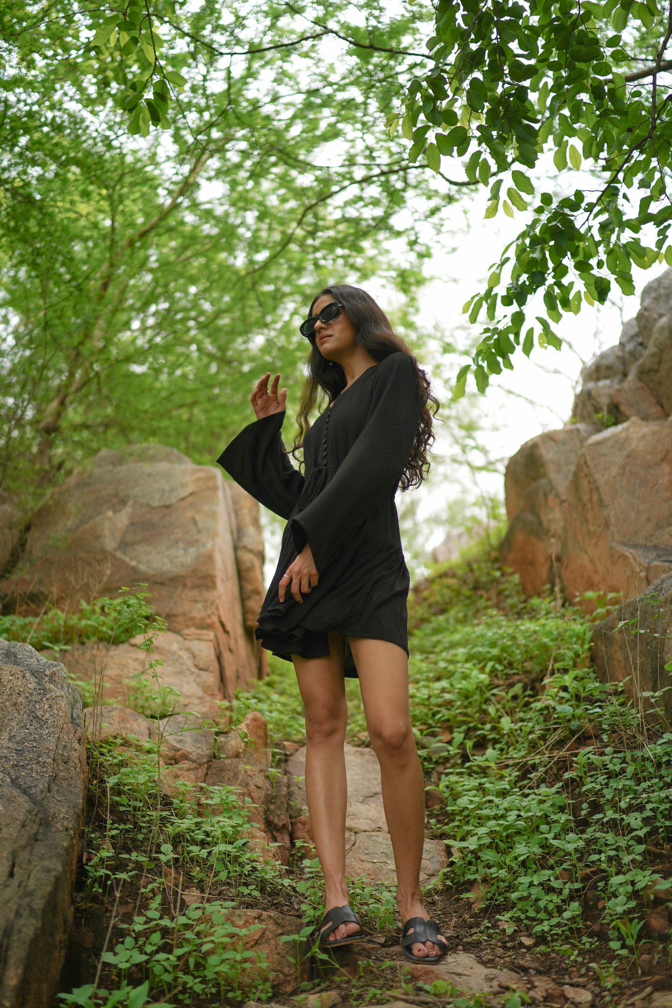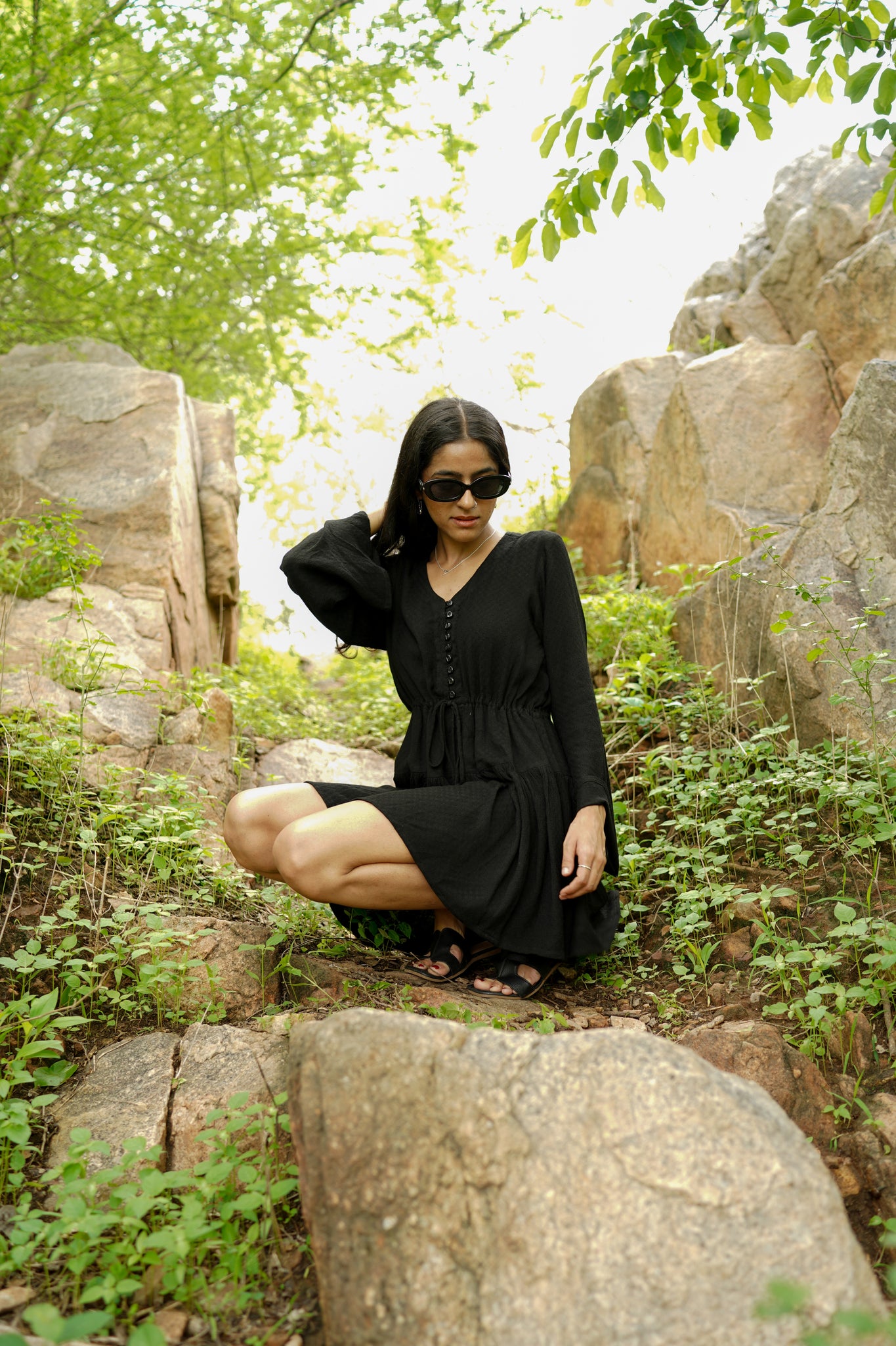 The Sienna dress is a combination of all our favourite details in one. It features a V button down neckline, an adjustable waist with tasseled drawstring and a flowy tiered skirt.
